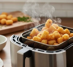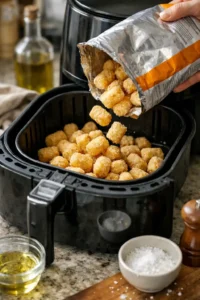 Avoid tossing tots in wet sauces before cooking. Liquids add surface moisture and reduce crispiness. If you want saucy tots, cook them first, toss lightly, then air fry for 1–2 more minutes.